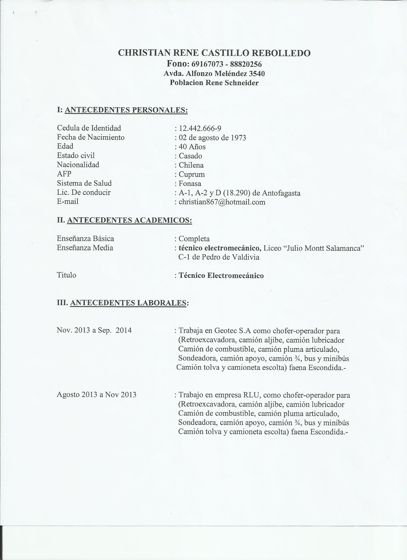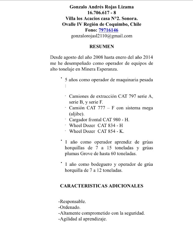 Cargo 'Operador Mina.' (Cod:1207)